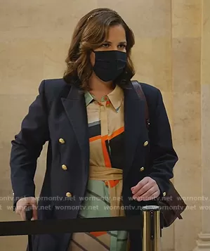 Sara Castillo (played by Lindsay Mendez) on All Rise on OWN was spotted wearing this navy double breasted blazer on All Rise on episode 'Bad Beat' (2x04) in Dec 2020. Sara's Blazer is the Metal Button Blazer by Zara.