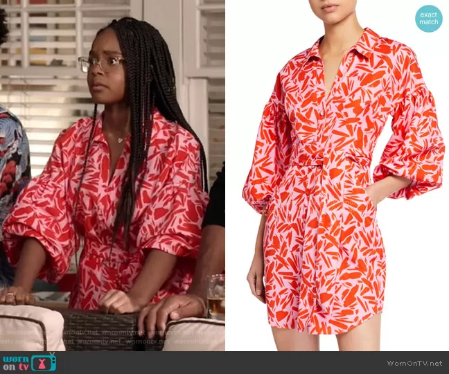 Diane Johnson (played by Marsai Martin) on Black-ish on ABC was spotted wearing this pink and red printed shirtdress on Black-ish on episode 'Our Wedding Dre' (7x06) in Nov 2020. Diane's Dress is the Samy Dress by Veronica Beard.