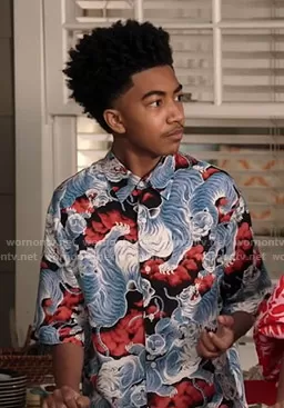 Jack Johnson (played by Miles Brown) on Black-ish on ABC was spotted wearing this tiger print shirt on Black-ish on episode 'Our Wedding Dre' (7x06) in Nov 2020. Jack's Shirt is the Tiger Casual Short Sleeve Button-Up Shirt by Sandro.
