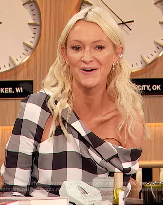 on The Drew Barrymore Show on CBS was spotted wearing this check cutout dress on The Drew Barrymore Show on Nov 19 2020's episode. 's Dress is the Asymmetric cutout gingham crepe midi dress by Monse.