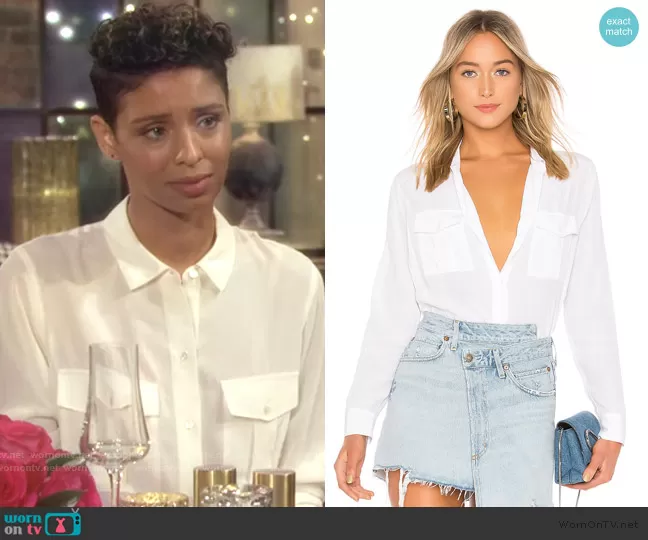 Rhett Silk Button Down Blouse by Rails worn by Elena Dawson (Brytni Sarpy) on The Young and the Restless
