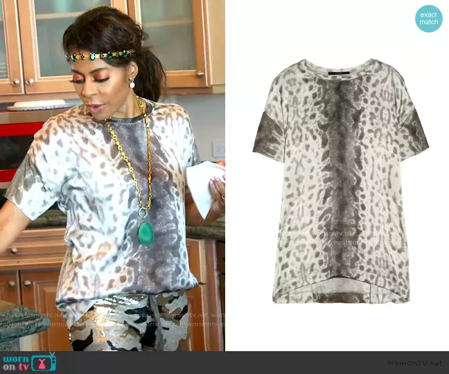 Mary Cosby on The Real Housewives of Salt Lake City on Bravo was spotted wearing this snake print tee on The Real Housewives of Salt Lake City on episode 'Everybody Needs a Switzerland' (1x03) in Nov 2020. Mary's Top is the Snake-Print Silk T-Shirt by Gucci.