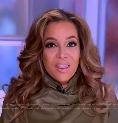 Sunny Hostin on The View on ABC was spotted wearing this green leather drape blouse on The View on Nov 24 2020's episode. Sunny's Top is the Bilbi draped leather blouse by Dodo Bar Or.