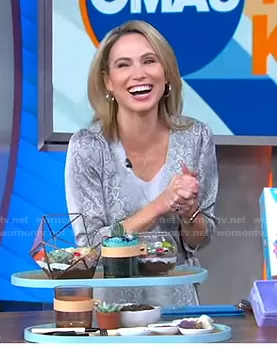 Amy Robach on Good Morning America on ABC was spotted wearing this grey snake print wrap dress on Good Morning America on Nov 24 2020's episode. Amy's Dress is the Long Sleeve Printed Wrap Dress by Bcbgmaxazria.