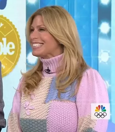 Jill Martin on Today on NBC was spotted wearing this pink colorblock turtleneck sweater on Today on Nov 18 2021's episode. Jill's Sweater is the Allan Pullover by Loveshackfancy.
