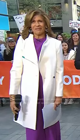 Hoda Kotb on Today on NBC was spotted wearing this white wrap coat on Today on Mar 07 2024's episode. Hoda's Coat is the Wool Blend Long Wrap Coat by Ted Baker.