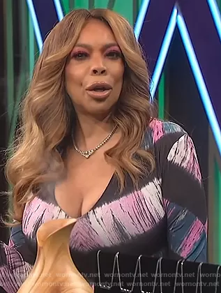 Wendy Williams on The Wendy Williams Show on Various was spotted wearing this chevron tie dye bodysuit on The Wendy Williams Show on Dec 03 2020's episode. Wendy's Bodysuit is the Sybil Long Sleeve Thong Bodysuit by AFRM.