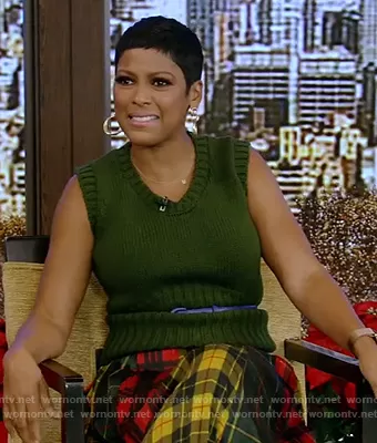 on Live with Kelly and Mark on Disney ABC Home Entertainment was spotted wearing this multicolored plaid skirt on Live with Kelly and Ryan on Dec 03 2020's episode. 's Skirt is the Asymmetric pleated checked twill skirt by Monse.
