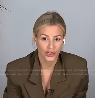Morgan Stewart on E! News on E! was spotted wearing this khaki blazer on E! News Daily Pop on Dec 07 2020's episode. Morgan's Jacket is the Julie Double-Breasted Blazer by Frankie Shop.