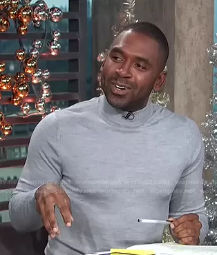 Justin Sylvester on E! News on E! was spotted wearing this grey turtleneck sweater on E! News Daily Pop on Dec 07 2020's episode. Justin's Sweater is the Slim Fit Wool Turtleneck Sweater by Reiss.