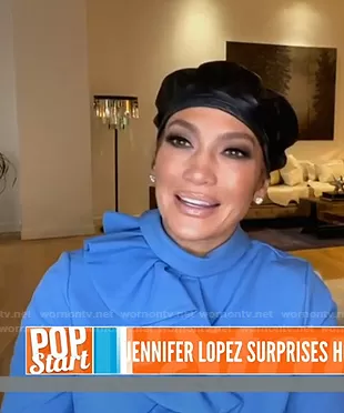 on Today on NBC was spotted wearing this blue ruffle blouse on Today on Dec 09 2020's episode. 's Top is the Ruffled Bell Sleeve Blouse by Gucci.