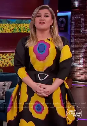 Kelly Clarkson on The Kelly Clarkson Show on NBC was spotted wearing this black floral print flare dress on The Kelly Clarkson Show on Dec 04 2020's episode. Kelly's Dress is the Bloom Dress by Pleats Please Issey Miyake.