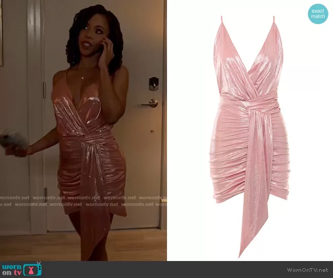 Andrea Barnes (played by Kj Smith) on Tyler Perrys Sistas on BET was spotted wearing this metallic pink mini dress on Tyler Perrys Sistas on episode 'The Encounter' (2x10) in Dec 2020. Andi's Dress is the Ciara Dress by House of CB.