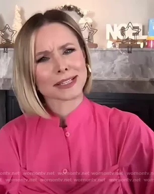 Puff Sleeves Belted Dress by Bouguessa worn by Kristen Bell on The Drew Barrymore Show