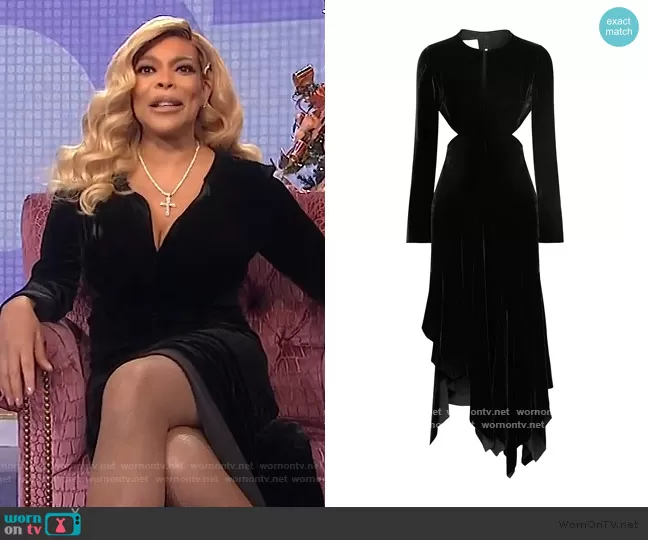 Wendy Williams on The Wendy Williams Show on Various was spotted wearing this black velvet dress on The Wendy Williams Show on Dec 11 2020's episode. Wendy's Dress is the Long Dress by Marques Almeida.