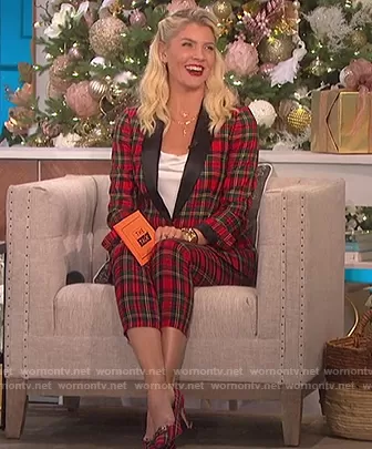 Amanda Kloots on The Talk on CBS was spotted wearing this red plaid blazer and pants on The Talk on Dec 15 2020's episode. Amanda's Blazer is the Red Tartan Blazer by J. Crew . Amanda's Pants is the Red Tartan Blazer by J. Crew . Amanda's Shoes is the Lucie Pump by J. Crew.