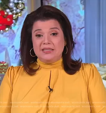 Ana Navarro on The View on ABC was spotted wearing this yellow mock neck dress on The View on Dec 16 2020's episode. Ana's Dress is the Mock Neck Keyhole Dress by Eloquii.