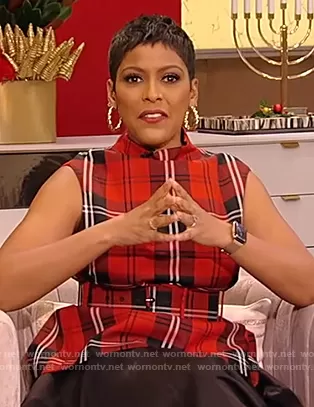 Tamron Hall on Tamron Hall Show on ABC was spotted wearing this red plaid belted top on Tamron Hall Show on Dec 17 2020's episode. Tamron's Top is the Belted tartan wool-twill top by Marc Jacobs.