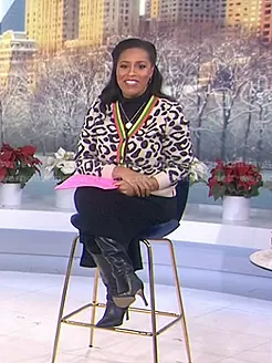 Sheinelle Jones on Today on NBC was spotted wearing this leopard print cardigan on Today on Dec 21 2020's episode. Sheinelle's Sweater is the The Cat Cardigan by Kule.
