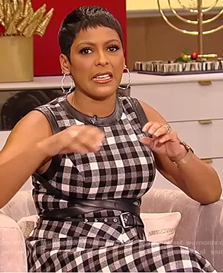 Tamron Hall on Tamron Hall Show on ABC was spotted wearing this black belted plaid dress on Tamron Hall Show on Dec 22 2020's episode. Tamron's Dress is the Dover belted leather-trimmed checked wool midi dress by Michael Kors.