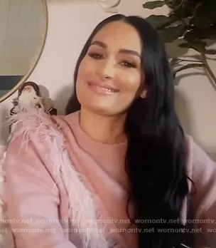 on Live with Kelly and Mark on Disney ABC Home Entertainment was spotted wearing this pink feather trim sweater on Live with Kelly and Ryan on Dec 28 2020's episode. 's Sweater is the Merritt Pullover by Cinq a Sept.