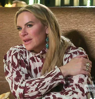 Heather Gay on The Real Housewives of Salt Lake City on Bravo was spotted wearing this white and red printed blouse on The Real Housewives of Salt Lake City on episode 'Fashion Faux Pas' (1x07) in Dec 2020. Heather's Top is the Yoshi Blouse by Isabel Marant Étoile.