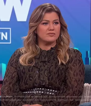 Kelly Clarkson on The Kelly Clarkson Show on NBC was spotted wearing this green leopard tie neck dress on The Kelly Clarkson Show on Jan 04 2021's episode. Kelly's Dress is the Sammy Printed Midi Dress by Derek Lam 10 Crosby.