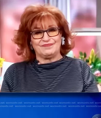 Joy Behar on The View on ABC was spotted wearing this gray stripe top on The View on Jul 28 2021's episode. Joy's Top is the Striped Funnel Neck Top by Eileen Fisher.