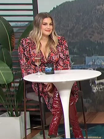 Carissa Loethen Culiner on E! News on E! was spotted wearing this floral print v-neck dress on E! News Daily Pop on Jan 05 2021's episode. Carissa's Dress is the Floral Print Ruched Blouson Long Sleeve Dress by Topshop.