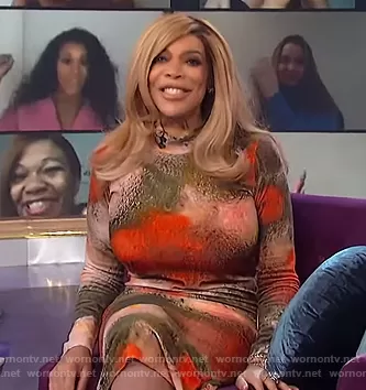 Wendy Williams on The Wendy Williams Show on Various was spotted wearing this watercolor floral dress on The Wendy Williams Show on Jan 06 2021's episode. Wendy's Dress is the Multicolor Velvet Pollen Dress by Henrik Vibskov.