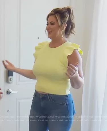 Emily Simpson on The Real Housewives of Orange County on Bravo was spotted wearing this yellow ruffle sleeve top on The Real Housewives of Orange County on episode 'Trouble in Newport Beach' (15x13) in Jan 2021. Emily's Top is the Holley Top by A.L.C..