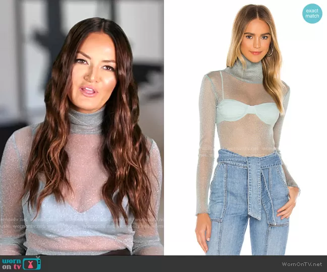 Lisa Barlow on The Real Housewives of Salt Lake City on Bravo was spotted wearing this metallic turtleneck top on The Real Housewives of Salt Lake City on episode 'Hot Tub Confessions' (1x08) in Jan 2021. Lisa's Top is the Charli Turtleneck Top by Jonathan Simkhai.