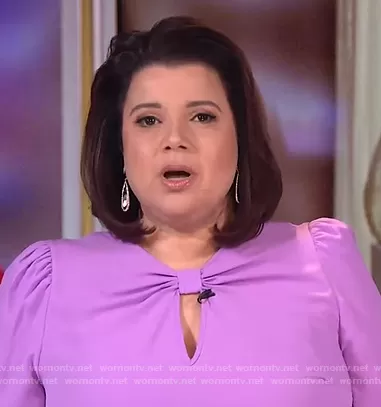 Ana Navarro on The View on ABC was spotted wearing this purple twist neck top on The View on Jan 08 2021's episode. Ana's Top is the Twist Front Blouse by Eloquii.