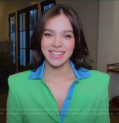 Structured-Shoulder Polo Shirt by Versace worn by Hailee Steinfeld on GMA