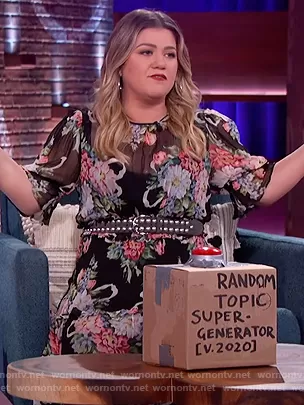 Kelly Clarkson on The Kelly Clarkson Show on NBC was spotted wearing this black floral sheer mini dress on The Kelly Clarkson Show on Jan 08 2021's episode. Kelly's Dress is the Pretty Things Mini Dress by Alice McCall.