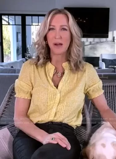 Lara Spencer on Good Morning America on ABC was spotted wearing this yellow floral pintuck blouse on Good Morning America on Jan 08 2021's episode. Lara's Top is the Dakota Ruffle Sleeve Top by Lucky Brand.