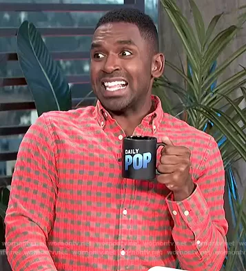 Justin Sylvester on E! News on E! was spotted wearing this red flannel shirt on E! News Daily Pop on Jan 12 2021's episode. Justin's Shirt is the Levon Checked Flannel Button Down Shirt by NN07.