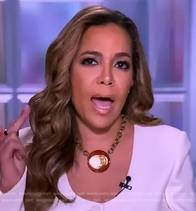 Sunny Hostin on The View on ABC was spotted wearing this white button down blazer on The View on Jan 13 2021's episode. Sunny's Blazer is the Tamaar plunging-neck blazer by Altuzarra.