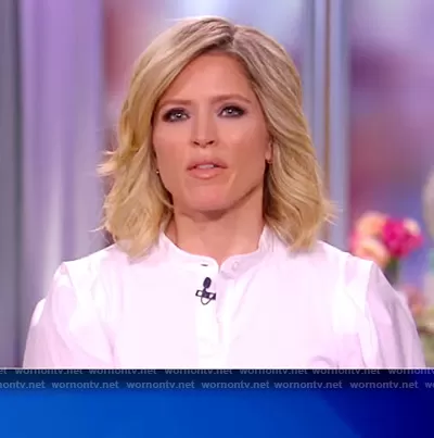 Sara Haines on The View on ABC was spotted wearing this white puff sleeve blouse on The View on Jan 21 2021's episode. Sara's Top is the Robbie Jersey Poplin Top by A.L.C..