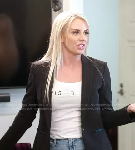 Whitney Rose on The Real Housewives of Salt Lake City on Bravo was spotted wearing this black blazer on The Real Housewives of Salt Lake City on episode 'All Bets are Off' (1x11) in Jan 2021. Whitney's Jacket is the Scuba Jacket by Veronica Beard . Whitney's Bag is the Palm Springs MM backpack by Louis Vuitton.
