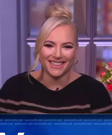 Meghan McCain on The View on ABC was spotted wearing this black stripe sweater on The View on Jan 22 2021's episode. Meghan's Sweater is the Breton Boat Neck Stripe Cashmere Sweater by Vince.