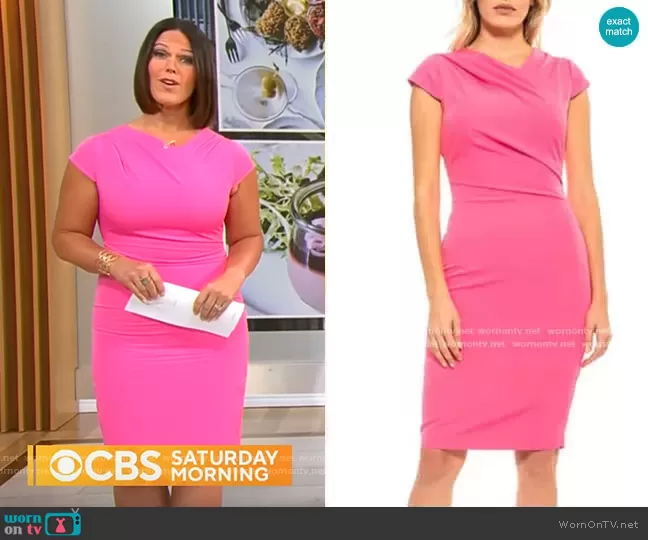 Dana Jacobson on CBS Mornings on CBS was spotted wearing this pink cap sleeve dress on CBS Mornings on Aug 29 2022's episode. Dana's Dress is the Ester Pleated Neck Sheath Dress by Alexia Admor .