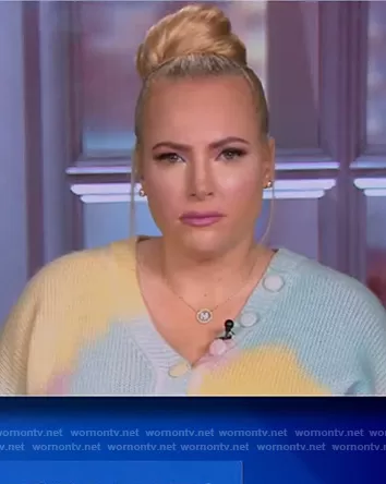Meghan McCain on The View on ABC was spotted wearing this tie dye button detail sweater on The View on Jan 25 2021's episode. Meghan's Sweater is the Naveen button-detailed tie-dyed alpaca-blend sweater by Love Shack Fancy.