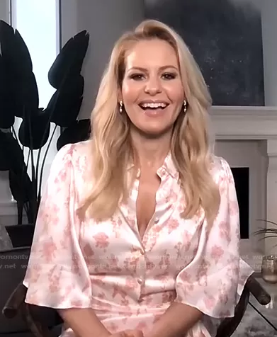 Floral-Print Wraparound Dress by Les Reveries worn by Candace Cameron Bure on E! News