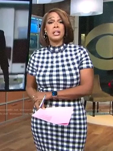 Gayle King on CBS Mornings on CBS was spotted wearing this gingham check dress on CBS This Morning on Jan 25 2021's episode. Gayle's Dress is the Heli Dress by Staud.