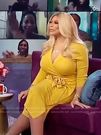 Wendy Williams on The Wendy Williams Show on Various was spotted wearing this yellow knit wrap dress on The Wendy Williams Show on Jan 26 2021's episode. Wendy's Dress is the Linda Wool-Cashmere Wrap Dress by Diane Von Furstenberg.