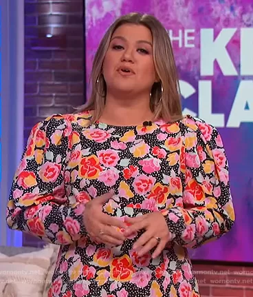 Kelly Clarkson on The Kelly Clarkson Show on NBC was spotted wearing this black floral print midi dress on The Kelly Clarkson Show on Jan 26 2021's episode. Kelly's Dress is the Pastel Dream Puff Sleeve Midi Dress by Topshop.