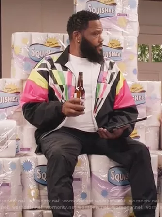 Andre Johnson (played by Anthony Anderson) on Black-ish on ABC was spotted wearing this multicolored jacket on Black-ish on episode 'black-out' (7x09) in Jan 2021. Andre's Jacket is the Archive Warm-Up by Sergio Tacchini.