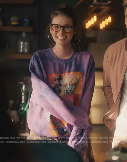 (played by ) on Grown-ish on Freeform was spotted wearing this purple Dragon Ball Z graphic sweatshirt on Grown-ish on episode 'Hard Place' (3x10) in Jan 2021. 's Sweater is the Super Dragon Ball Z Graphic Sweatshirt by Forever 21.