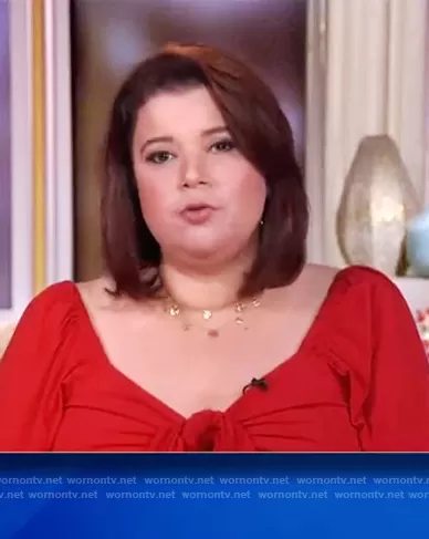 Ana Navarro on The View on ABC was spotted wearing this red tie front blouse on The View on Jan 29 2021's episode. Ana's Top is the Sweetheart Puff Sleeve Top by Eloquii.